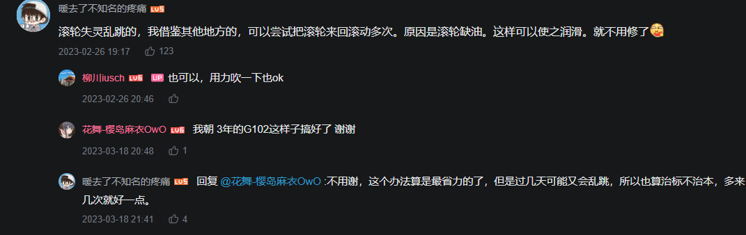 清理后装好并没有像预期那样恢复正常[修复教程]G102的手术很成功! Ps:按键双击、滚轮失灵上下跳动也能痊愈啦😱