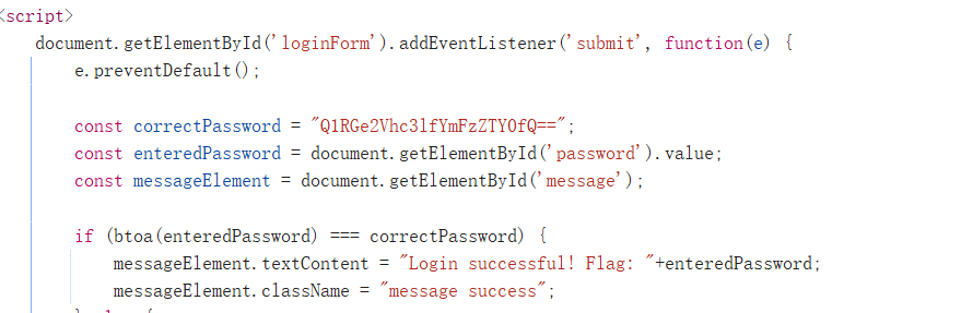 btoa(encoded) === correctPassword→再base64, 最终比对。
