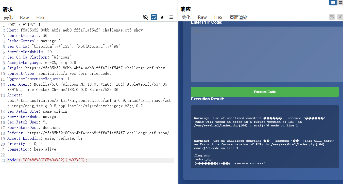 get_defined_vars()获取当前作用域内的所有变量,返回一个关联数组。next()将内部指针向前移动一位,并返回当前元素的值。这里用来获取最后一个定义的变量。array_pop()从数组末尾弹出一个元素并返回它。这里用来获取最后一个定义的变量的值。- 同时传入一个新的POST参数