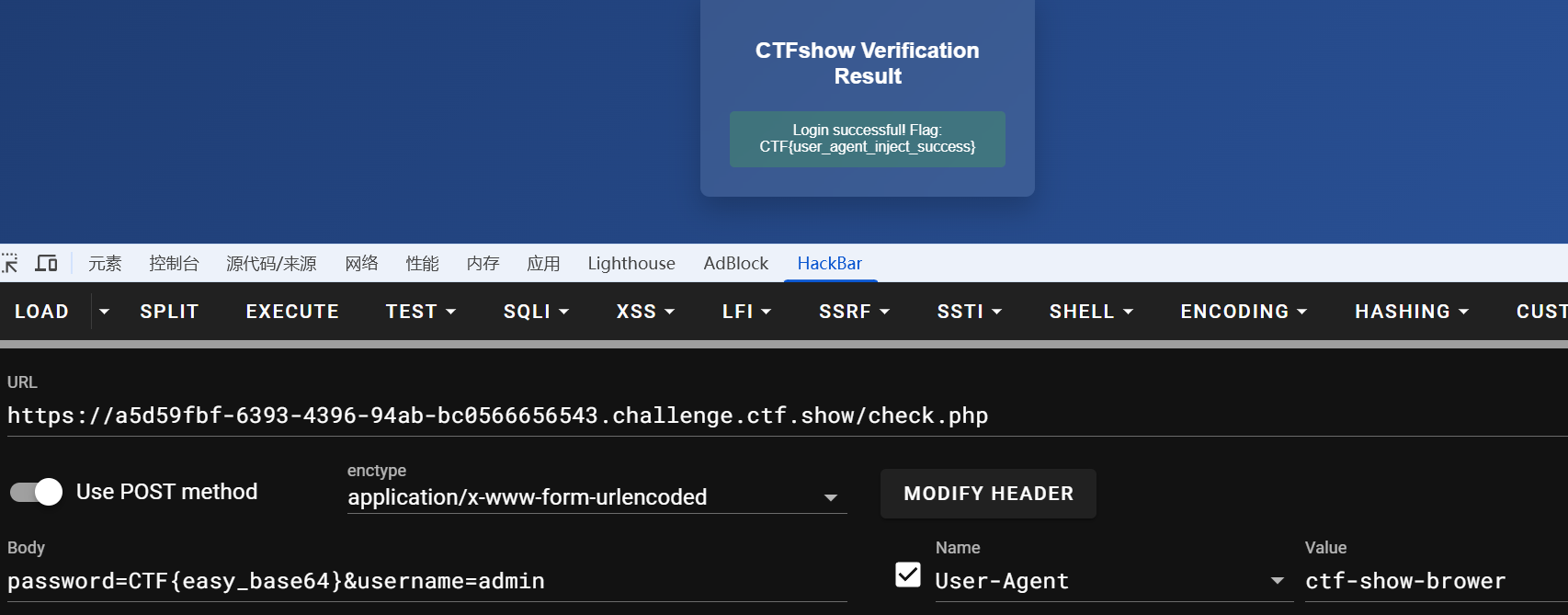 User-Agent(UA头)是HTTP请求中的一个字段,表示用户使用的浏览器或客户端软件的信息。用户可以在HTTP请求中自定义UA头,在CTF基础题目中,会有一些题目,验证用户的UA头是否符合特定要求,如果不符合要求,就无法登录成功或者访问特定资源。