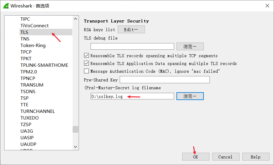 具体操作参考文章[Wireshark抓包工具解析HTTPS包 ](https://www.cnblogs.com/CodeReaper/p/16007397.html)