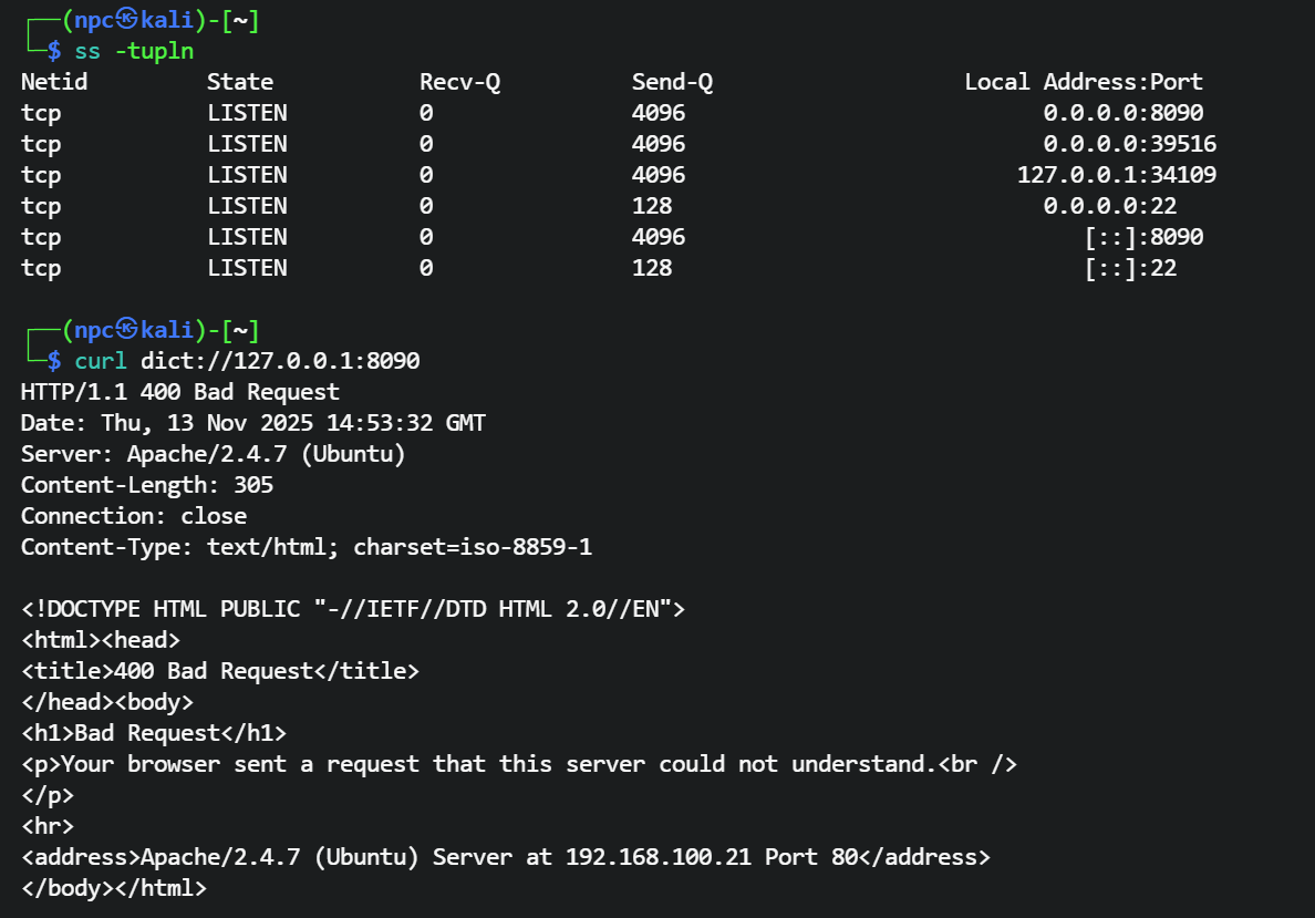 dict协议连接常见tcp协议端口时,会因为协议不兼容不匹配而返回错误信息,通过错误信息可以判断端口是否开放