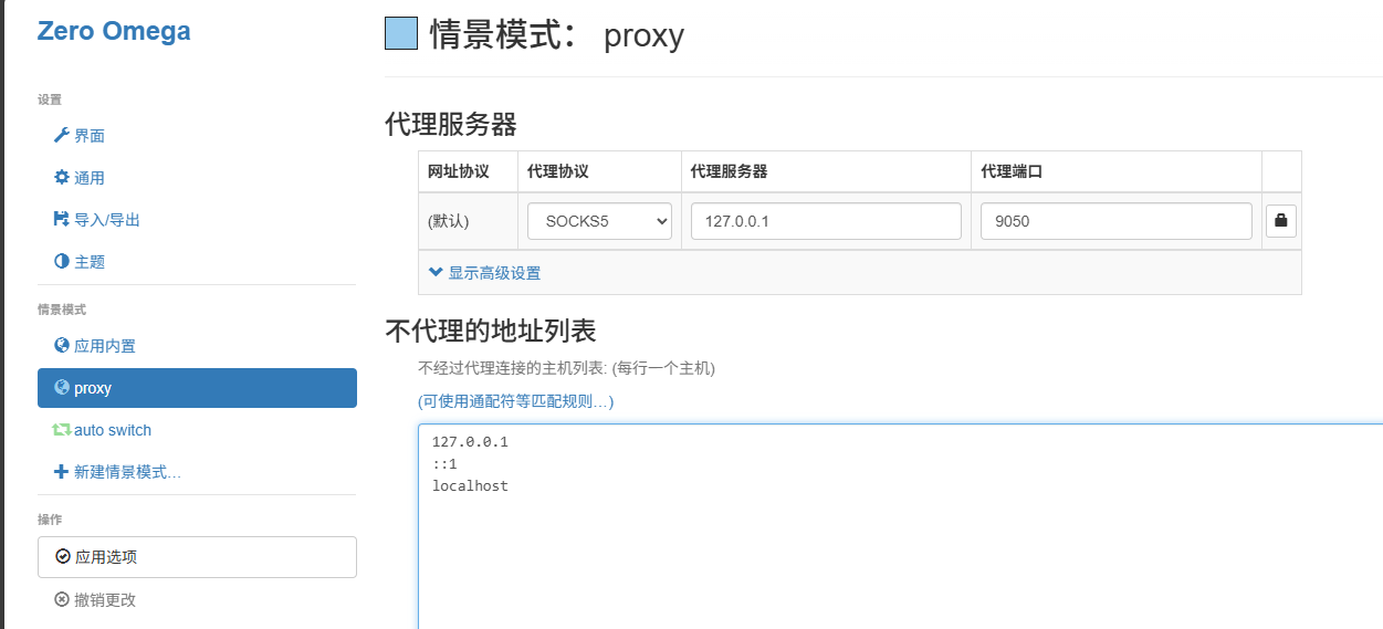 给浏览器插件配置代理,走本地的9050端口