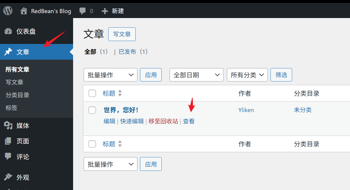 保存以后,回到文章列表,访问helloworld的那篇文章