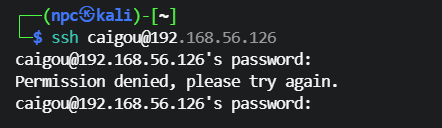 测试 caigou 用户与其他密码组合时,在caigou:cNNloFLE88YBIP4ZJfcy 时成功登录 ssh