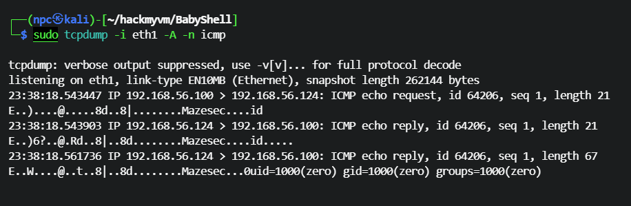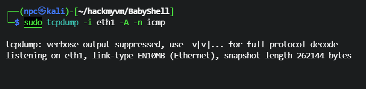 └─$ sudo tcpdump -i eth1 -A -n icmp