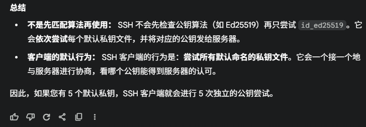 ssh 客户端会自动尝试使用所有默认的私钥文件名进行认证登录