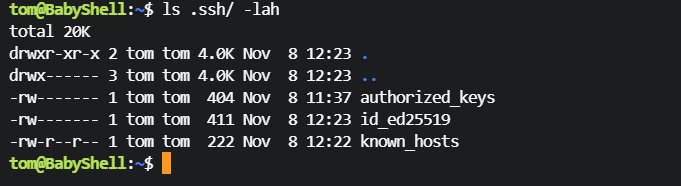 tom@BabyShell:~$ chmod 600 .ssh/id_ed25519