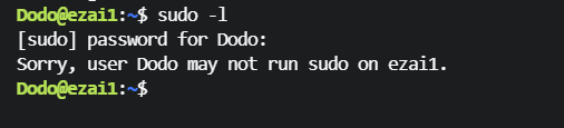 Sorry, user Dodo may not run sudo on ezai1.