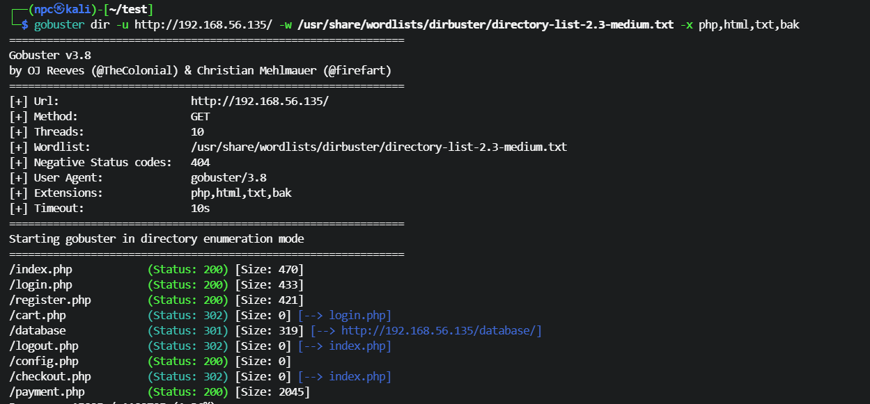 └─$ gobuster dir -u http://192.168.56.135/ -w /usr/share/wordlists/dirbuster/directory-list-2.3-medium.txt -x php,html,txt,bak