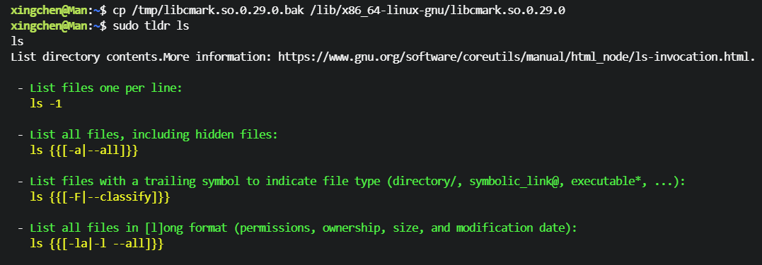 xingchen@Man:/tmp$ sudo /usr/bin/tldr ls