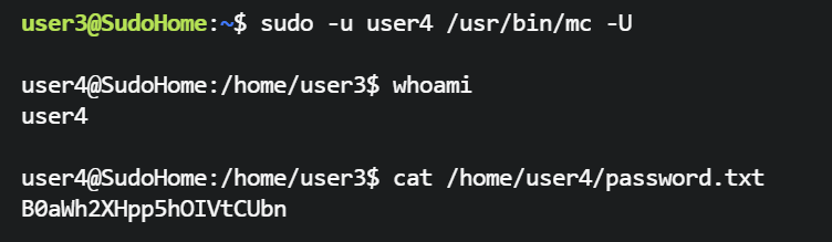 user4@SudoHome:/home/user3$ cat /home/user4/password.txt