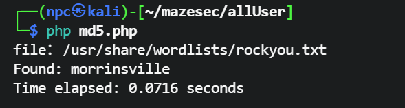 或者选择php、python语言遍历rockyou.txt,其他语言也可以