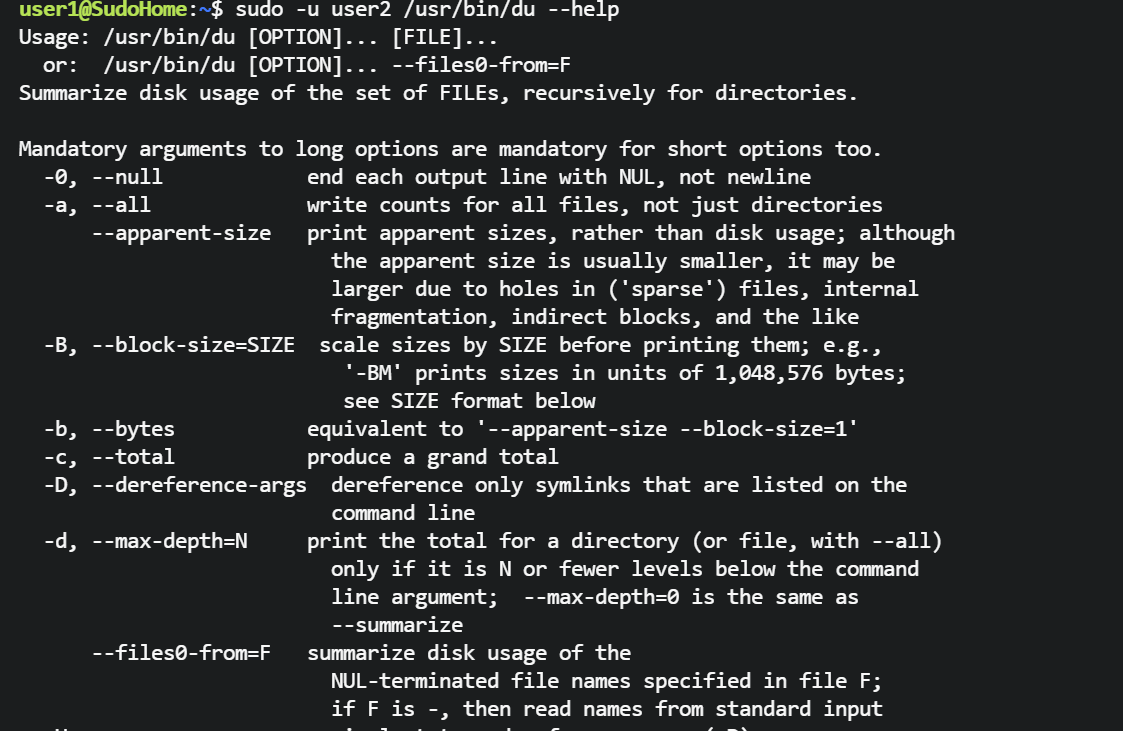 user1用户可以无密码使用 user2 的 du 命令,--help看看帮助