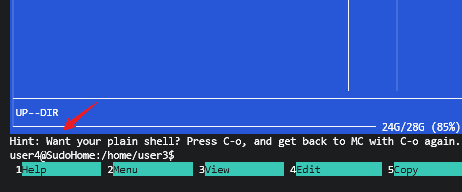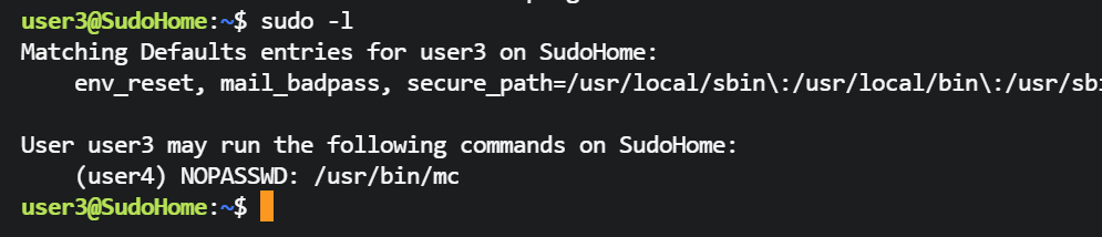 user3@SudoHome:~$ sudo -u user4 /usr/bin/mc -U