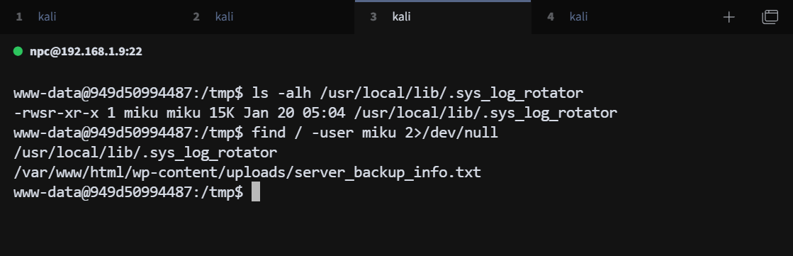 这是一个 miku 用户的 suid 文件,可以读取 miku 用户的文件,find 查找 miku 用户的文件
