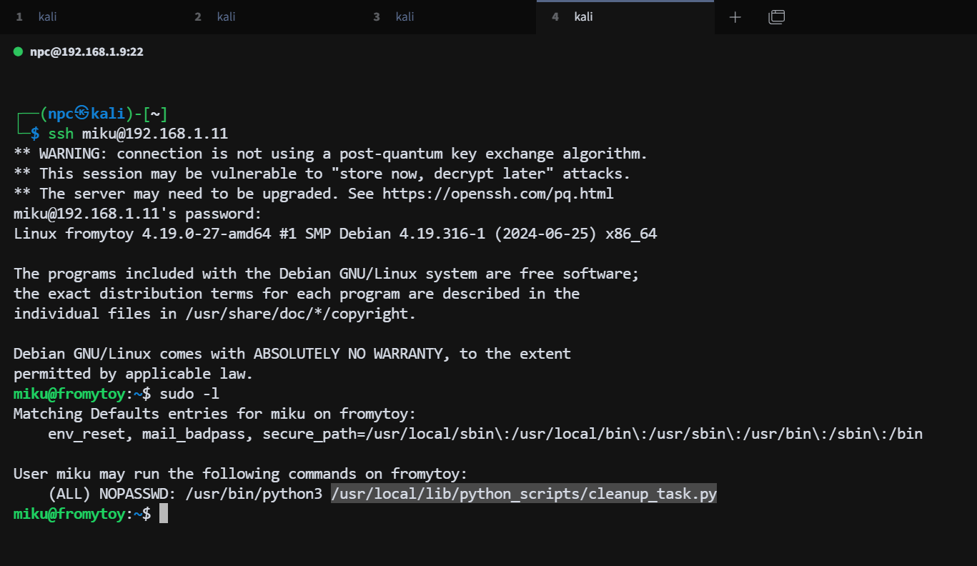 使用 sudo -l 枚举 miku 用户的 sudo 权限