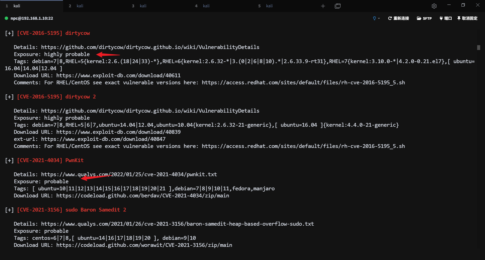 靶机内核版本较老,存在多个高危提权漏洞: