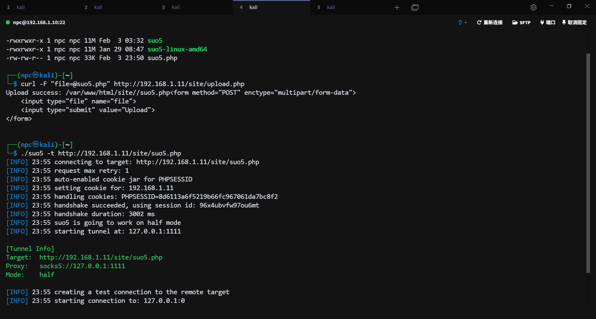 ./suo5 -t http://192.168.1.11/site/suo5.php