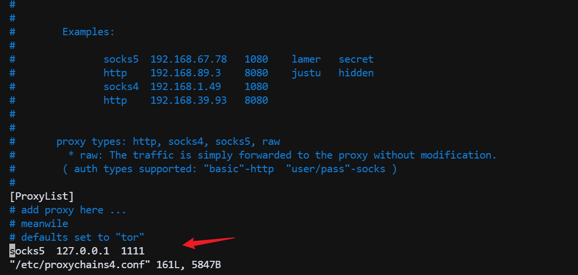 配置 /etc/proxychains4.conf,将流量指向 Suo5 的代理端口: