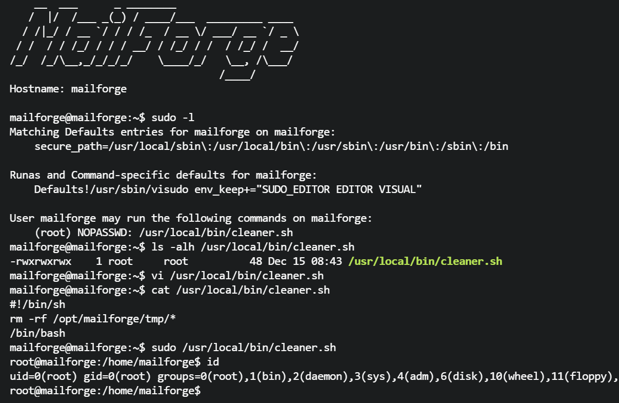 mailforge@mailforge:/tmp$ su root 2>/dev/null