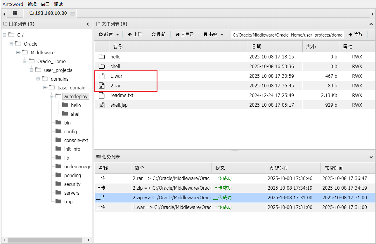 拷打哈基米,weblogic允许的rar格式并不是常用的压缩rar格式,所以失败了