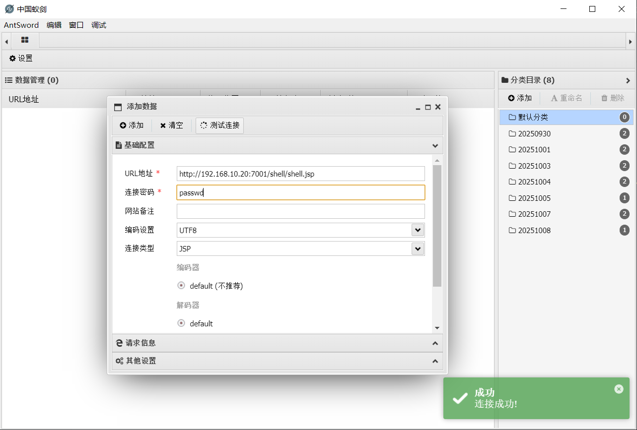 创建autodeploy\shell写入蚁剑webshell shell.jsp