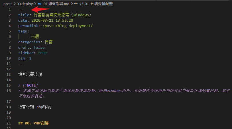 Markdown 文章需要包含 YAML Front Matter,格式如下:
