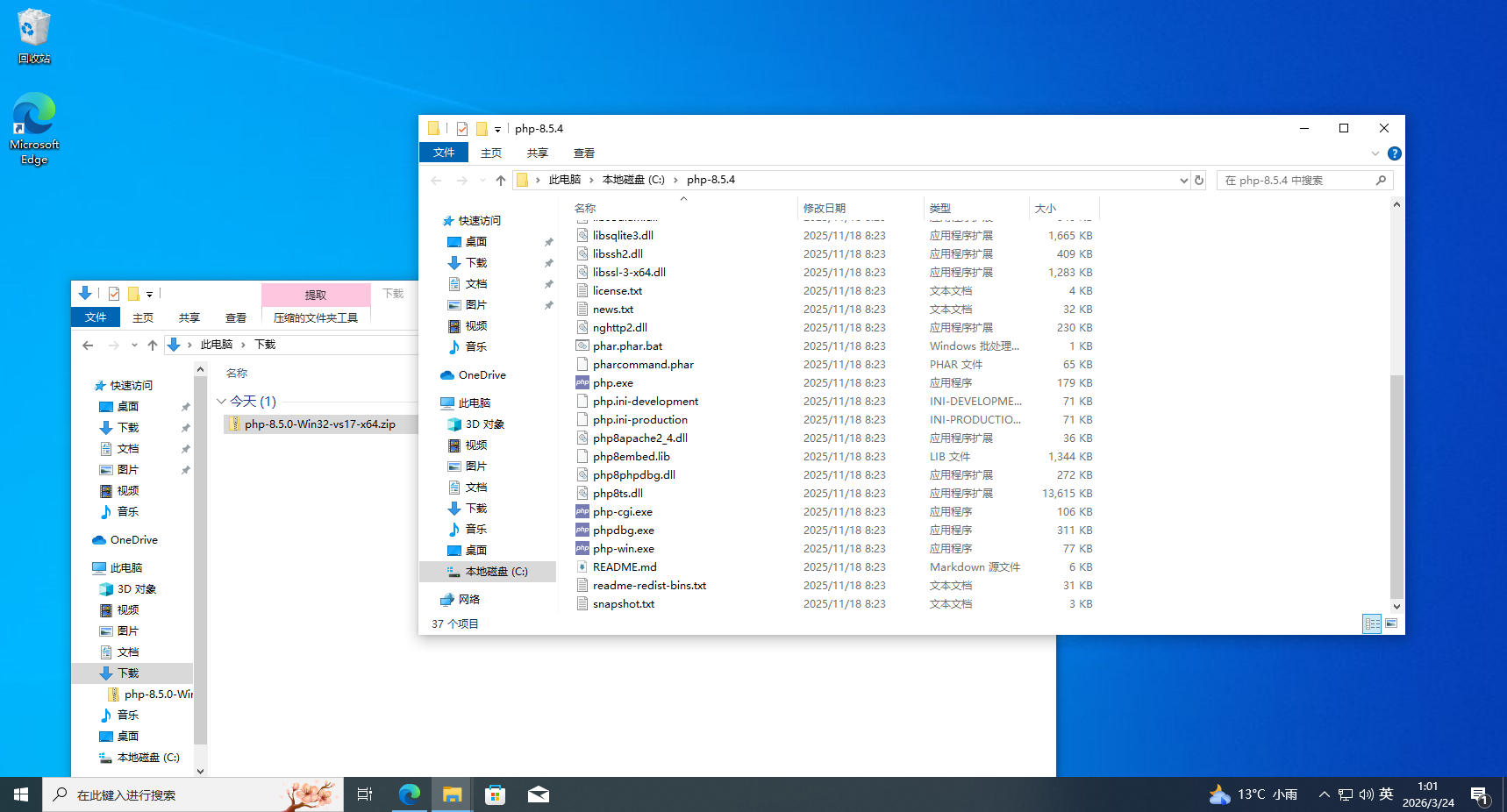下载后,解压压缩包到指定目录,这里演示解压到 C:\php-8.5.4,你可以解压到任何目录,如 D:\php-8.5.4 等。