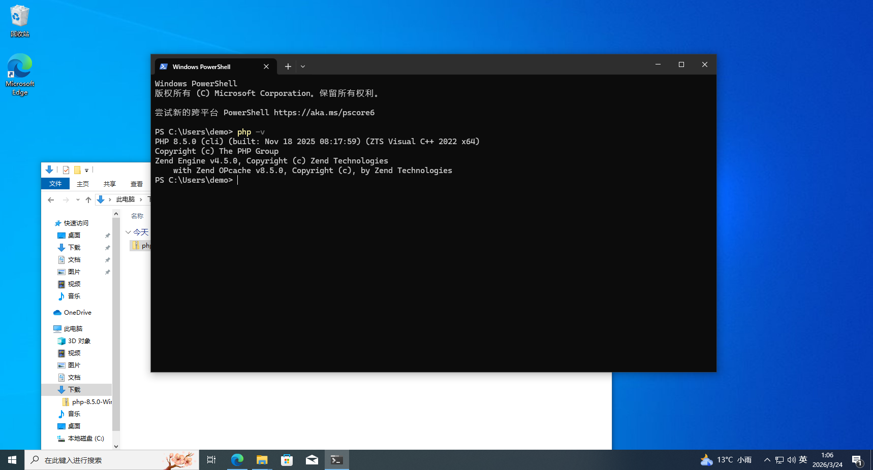 验证是否成功,打开终端(按 win 键输入终端或cmd),输入 php -v,如果显示 PHP 版本信息,则说明配置成功。